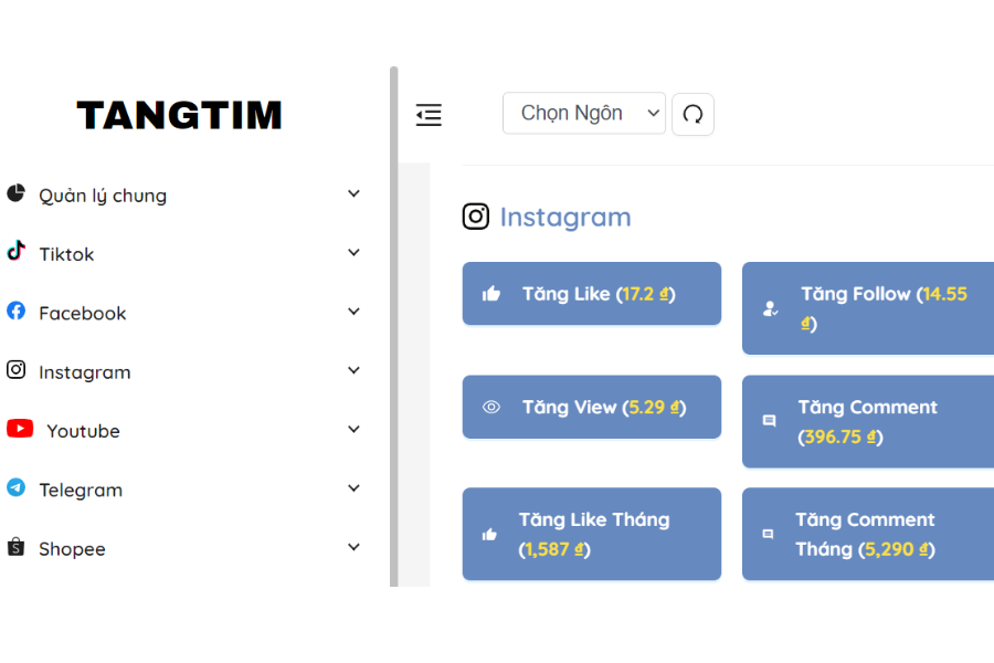 Tangtim.com là một trong những đơn vị uy tín hàng đầu trong việc cung cấp dịch vụ tăng like cho Instagram và các nền tảng mạng xã hội khác. Dịch vụ của chúng tôi bao gồm: